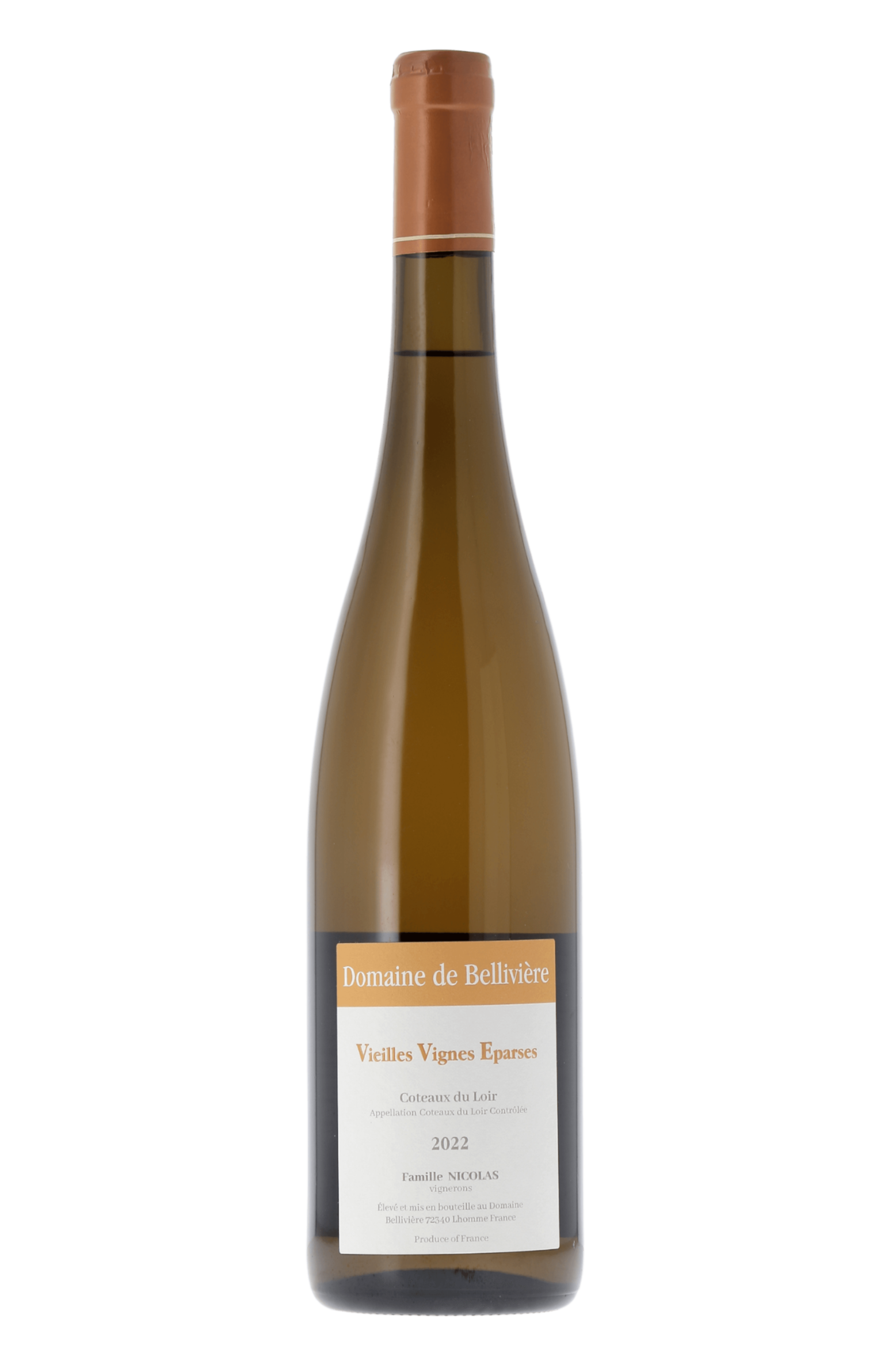 "Vieilles Vignes Éparses" est la cuvée emblématique du domaine, issue d’un assemblage de très vieilles vignes de Chenin. Elle témoigne du formidable potentiel des terroirs du Coteaux-du-Loir blanc. Avec finesse et élégance, ce vin dévoile une belle complexité et une minéralité saisissante, révélant toute l’authenticité du vignoble.